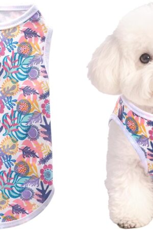 4 Pieces Pet Summer T-Shirts Hawaii Style Floral Pet Dog Shirt Breathable Cool Clothes Beach Seaside Puppy Sweatshirt for Small Puppy(Bright Style,Xs)
